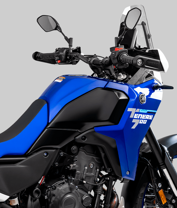 A Ténéré 700 se destaca pela carenagem compacta e o assento plano, que garantem agilidade e liberdade de movimento, tanto sentado quanto em pé. O tanque estreito em uma posição mais avançada, proporciona melhor distribuição de peso e aderência aos joelhos, garantindo controle máximo em qualquer terreno. Já o icônico farol de LED quádruplo reforça o olhar único e histórico da Ténéré, e foi desenhado com suporte em forma de "Y" trazendo um visual exclusivo, além de oferecer iluminação precisa para uma pilotagem otimizada de dia ou de noite.