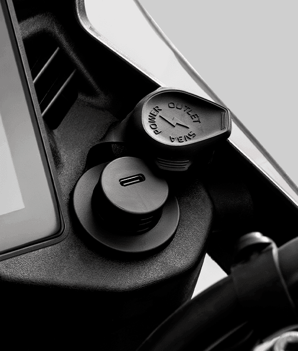 A tomada USB Tipo-C protegida por uma tampa à prova d'água permite recarregar seus dispositivos com facilidade, e os comandos intuitivos com joystick ergonômico de cinco direções, tornam a navegação pelas funções muito mais fácil. A Ténéré 700 oferece controle total com ABS e TCS (controle de tração) ajustáveis por um botão. O ABS tem três modos, permitindo desativar a atuação na roda traseira, nas duas rodas ou ligado nas duas rodas, enquanto o controle de tração pode ser desligado diretamente no painel, oferecendo controle total ao piloto em terrenos desafiadores.